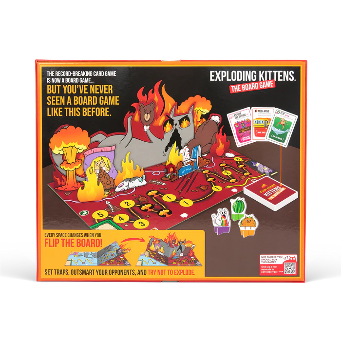 Der har aldrig været et brætspil som dette før! Dit mål er at nå til enden af brættet uden at lande på den Eksploderende Killing. For at gøre det spiller du kort og lægger strategier for at sabotere dine modstandere. Men bliv ikke for selvsikker, for ét forkert træk kan få brættet til at vende. Det forvandler brættet fuldstændigt og afslører en ny rute, hvor hvert eneste træk kan blive dit sidste. Du skal tænke hurtigt, danne alliancer, spille klogt og undgå de Eksploderende Killinger for enhver pris.